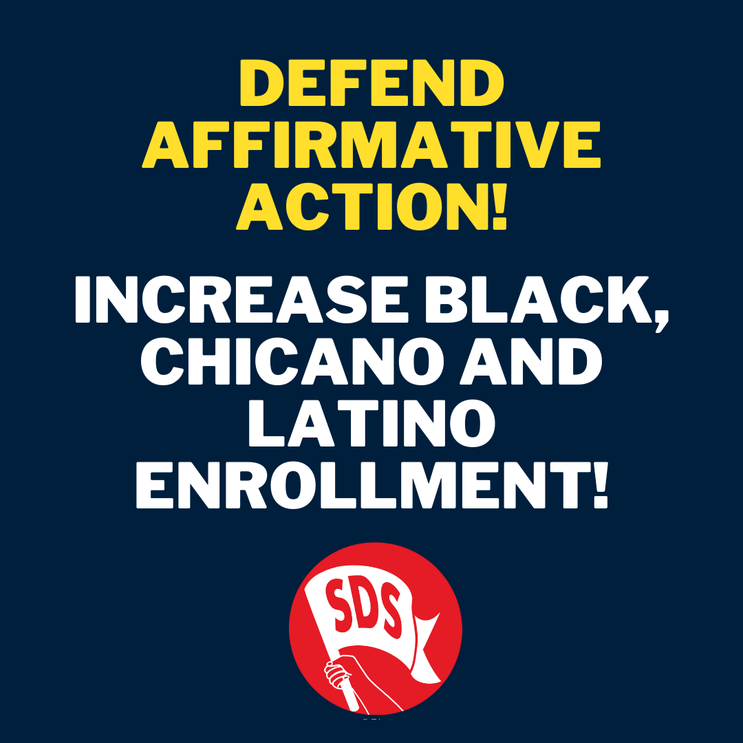 SDS has a long history of fighting to keep universities accessible to all students. Our chapters have fought to save vulnerable departments such as foreign languages and Africana Studies, against tuition hikes that would make university more inaccessible, and to increase Black student enrollment. Universities only changed their racist and exclusionary policies because of student activism in the past, so only a strong student movement can save them now.